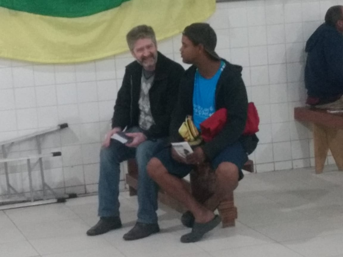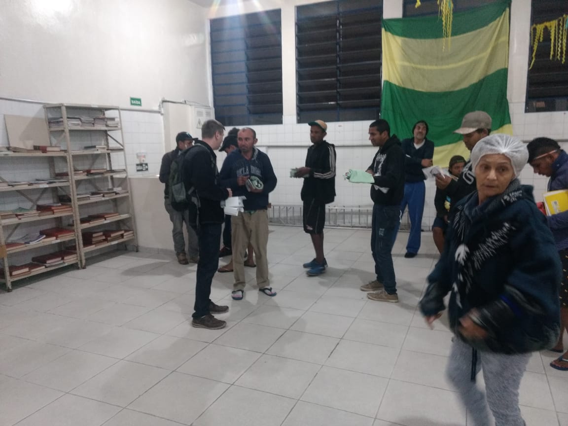 “Estou em tratamento”, diz, sem sorrir, o senhor com os olhos fundos ecoando a luta que enfrenta. “Drogas e álcool”, ele completa. Histórias de lutas, derrotas e vitórias, não faltam no Centro de Acolhida às Pessoas em Situação de Rua que fica próximo à estação Carandiru do metrô de São Paulo, SP. É um centro apenas para homens. Lá, encontram-se muitas histórias diferentes. Lá, encontram-se pessoas que, no frio desta semana, se abrigam ali para não passarem a noite na rua. São cerca de 100 pessoas abrigadas. No dia 12 de julho, em torno das 20h, um grupo de cristãos luteranos visitou essas pessoas e ouviu um pouco de suas histórias, orou com elas e repartiu abraços. Ah, sim, entregaram material de higiene pessoal ofertado pelos cristãos luteranos de São Paulo em parceria com a Hora Luterana, e também devocionários trimestrais Cinco Minutos com Jesus. Mas essa entrega foi um detalhe. Detalhe importante, mas apenas um detalhe quando o abraço, a oração, a conversa, o testemunho do amor de Cristo e o olhar encontram o outro. Apenas um detalhe quando quem não tem nem onde morar, perguntando se não há roupa usada para aquecê-lo, ouve e retribui um “Deus te abençoe”.