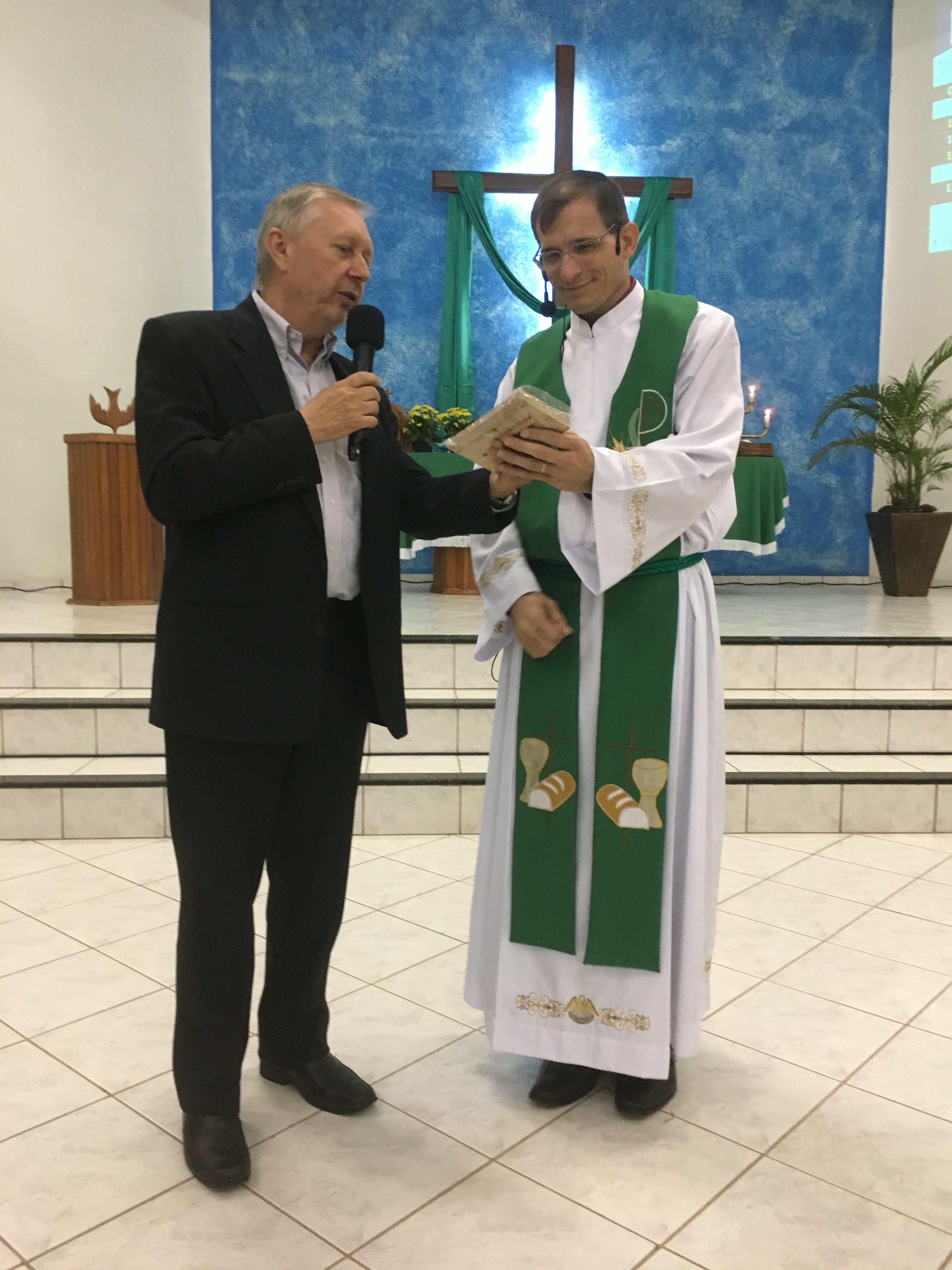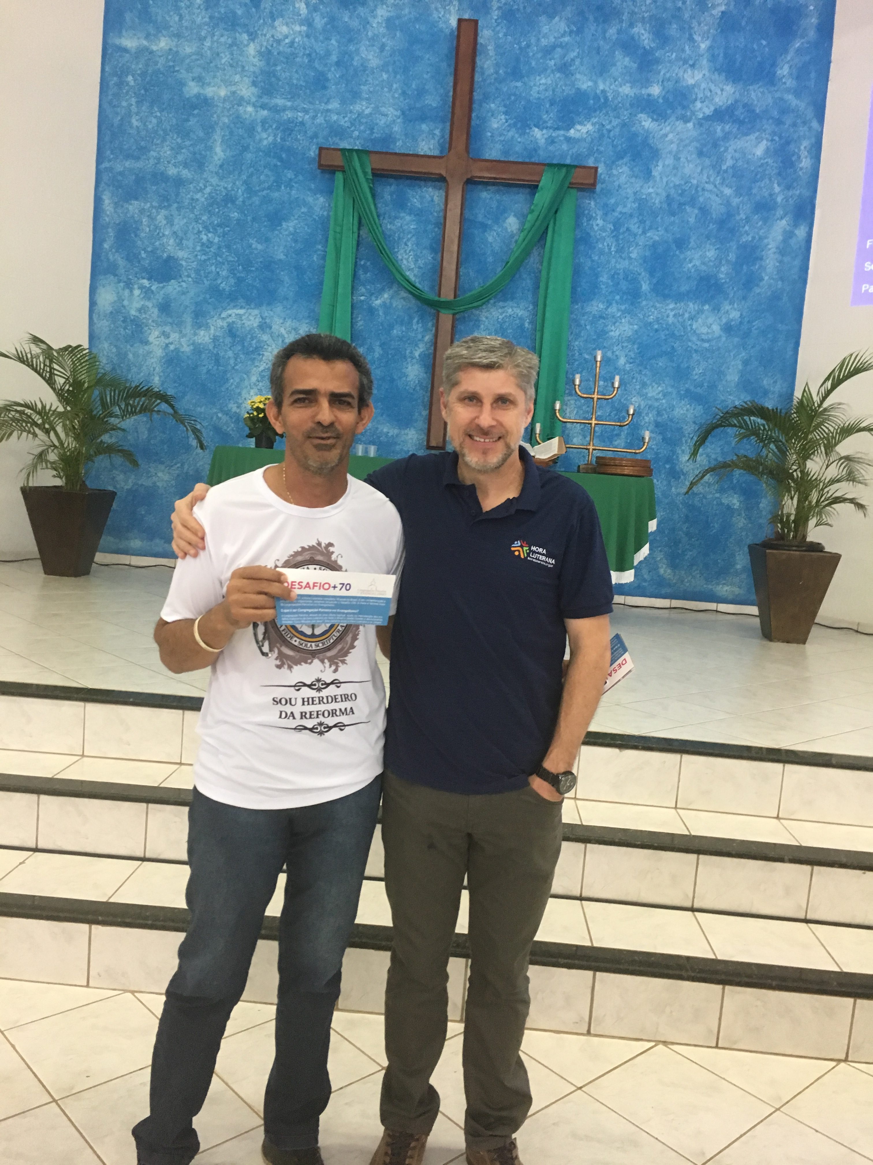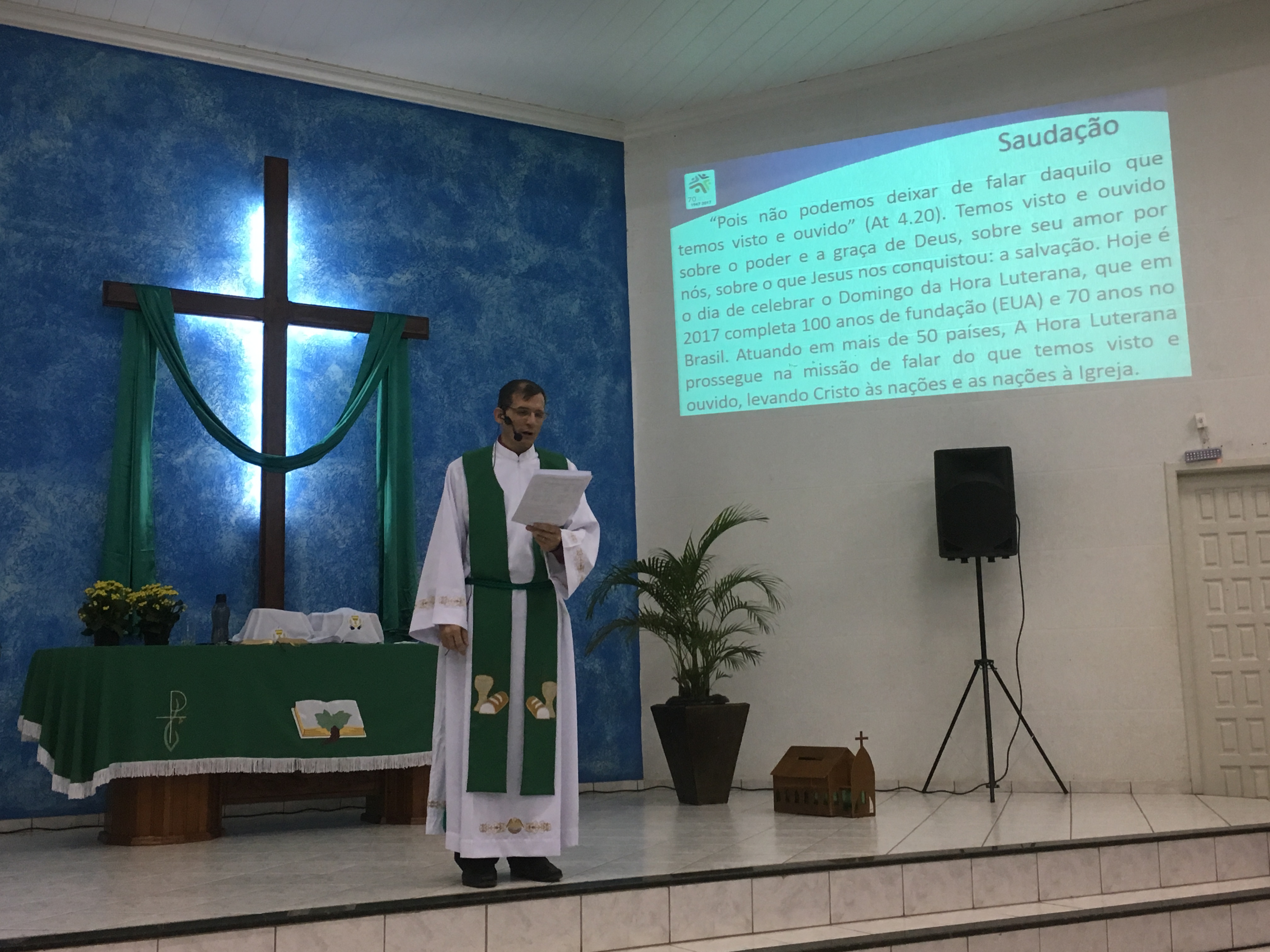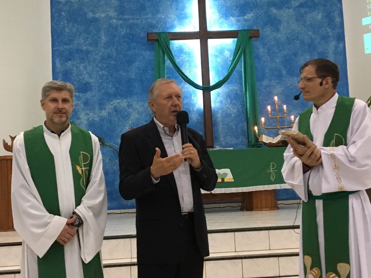 O culto alusivo aos 70 anos da Hora Luterana aconteceu na Congregação “Concórdia” em Cacoal, RO. A Liturgia foi dirigida pelo pastor local, rev. Volmir Forster e a mensagem pelo pastor Adelar Munieweg. Contou com a presença de 240 pessoas que louvaram em gratidão a Deus pelo trabalho Missionário da Hora Luterana no Brasil, lembrando também os 100 anos da Lutheran Hour Ministres. Esteve presente o Diretor Executivo da Hora Luterana, Paulo Warth, que agradeceu a hospitalidade e o apoio ao trabalho da Hora Luterana. A Congregação foi presenteada com uma placa comemorativa e os visitantes com literaturas da Hora Luterana. Para nossa alegria a Congregação “Concórdia” se juntou ao projeto “Congregação Parceira”. As ofertas do culto foram destinadas ao trabalho da Hora Luterana.