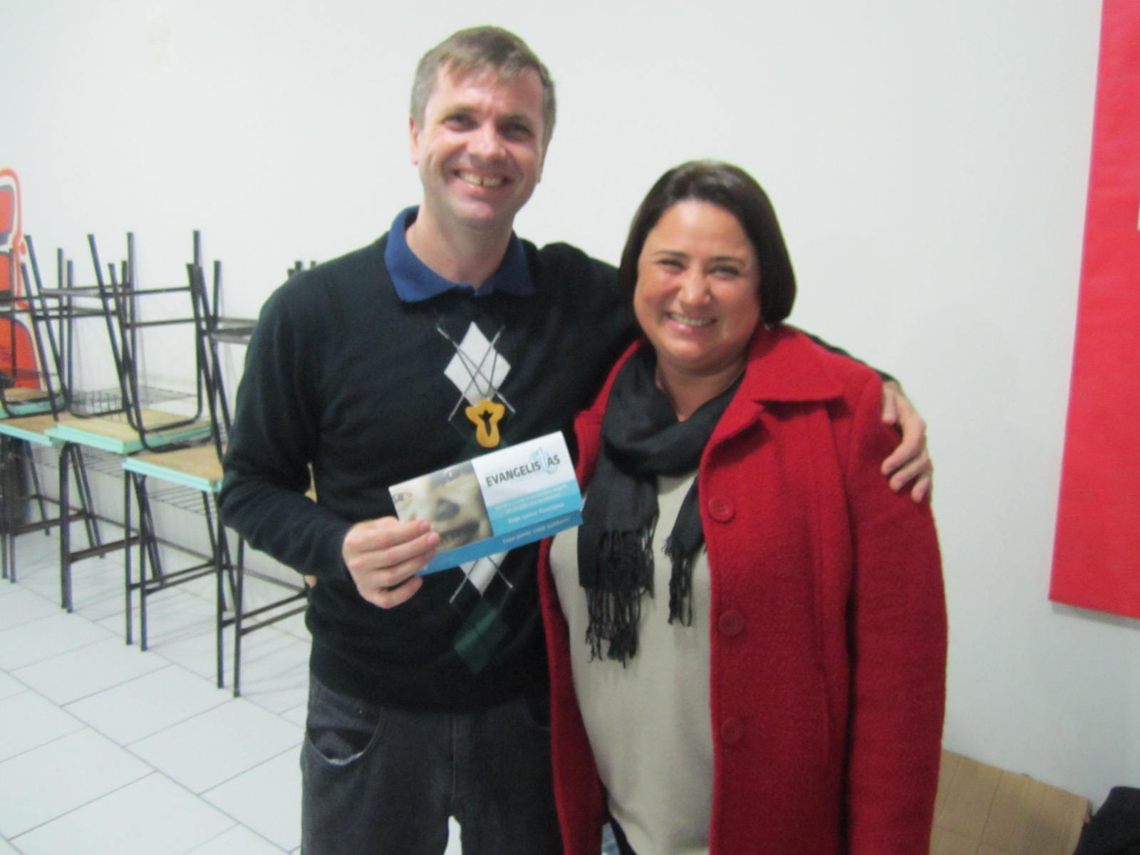 Nos dias 28 e 29 de maio, durante a disciplina de Testemunho Cristão I, no Instituto Bíblico Martinho Lutero em Pelotas, RS, o pastor Fernando Huf encontrou alguns participantes do Grupo dos Evangelistas. O Grupo dos Evangelistas é um programa da Hora Luterana para incentivar os cristãos a testemunharem sua fé com apoio de literatura cristã e, ao mesmo tempo, apoiarem todo o trabalho missionário da Hora Luterana. Como funciona? Você oferta mensalmente para o trabalho da Hora Luterana e recebe nosso material para auxiliar você em seu testemunho pessoal. Durante o encontro em Pelotas, mais três pessoas se juntaram ao GE! Quer participar também? Acesse agora e faça parte do Grupo dos Evangelistas.
