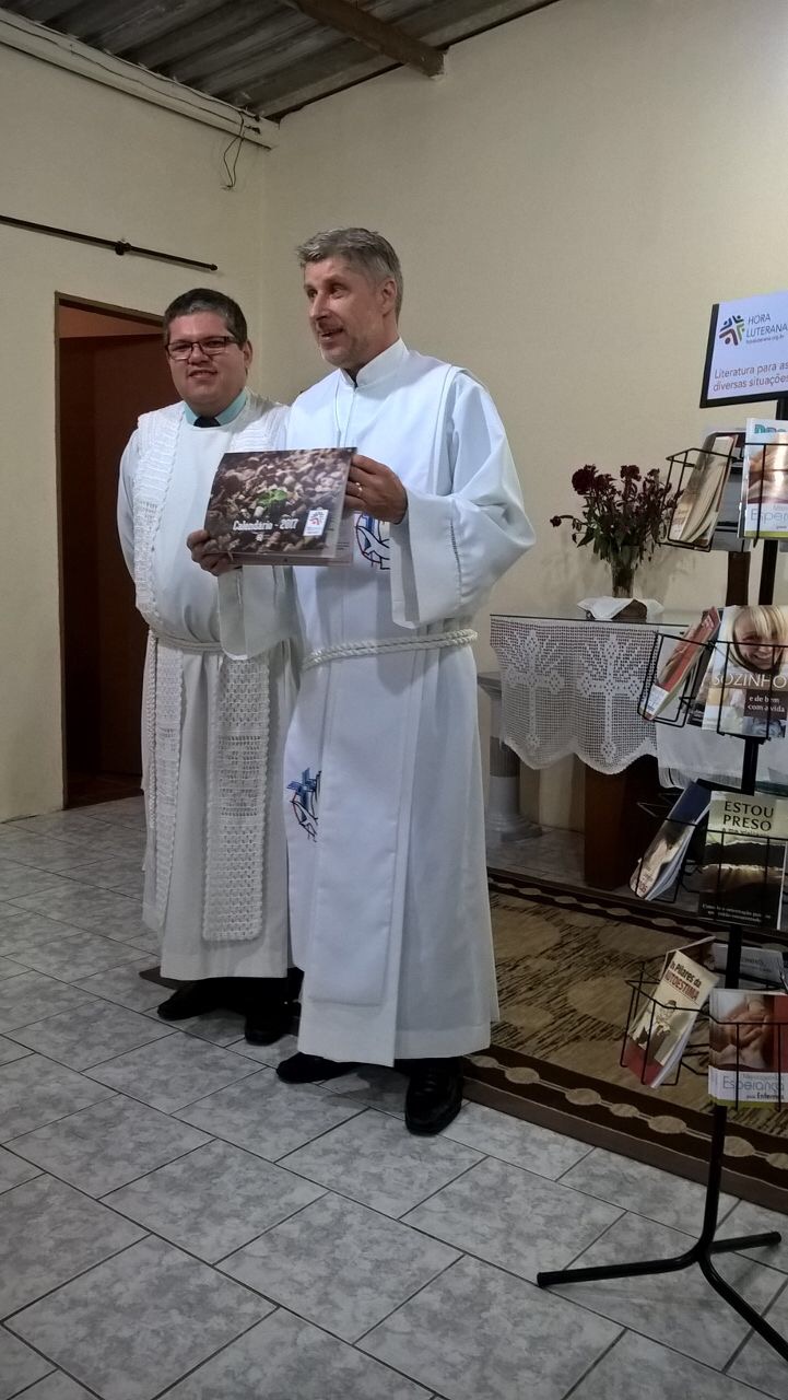 No dia 19 de maio (sexta-feira) às 20h o pastor Adelar Munieweg participou do culto da Hora Luterana na CEL Ebenézer, Vila Princesa, município de Pelotas/RS. A noite chuvosa não impediu que 20 corajosos irmãos em Cristo se reunissem para este momento de Gratidão e adoração ao Senhor. A liturgia do Culto foi dirigida pelo Reverendo André dos Santos da Silva, pastor Local e a Mensagem baseada em Atos 4.20 pelo pastor Adelar. O pastor Adelar agradeceu ao esforço deste pequena igreja, que assumiu o desafio de ser mais uma Congregação Parceira da Hora Luterana. As famílias presentes ganharam um Calendário da Hora Luterana.