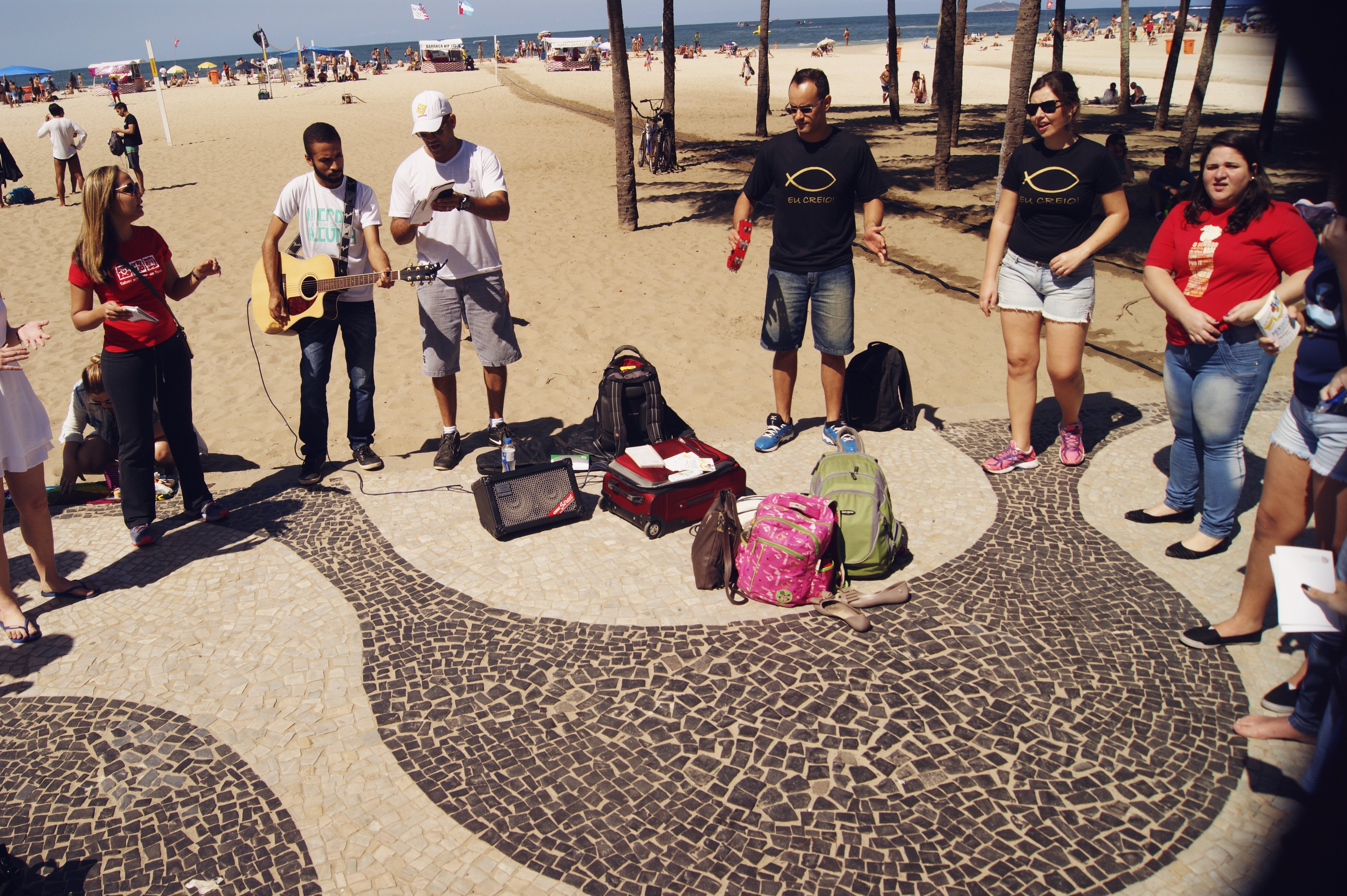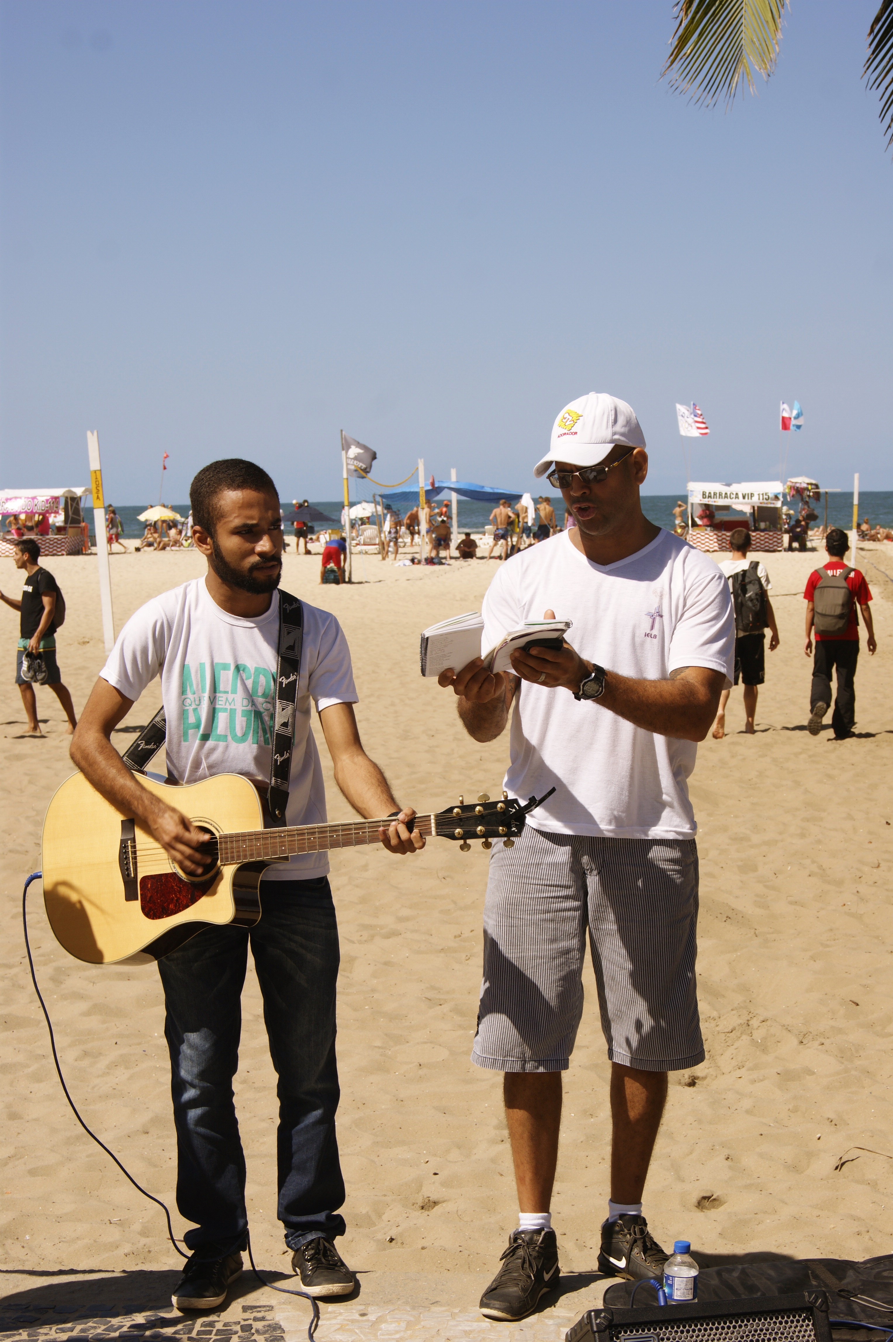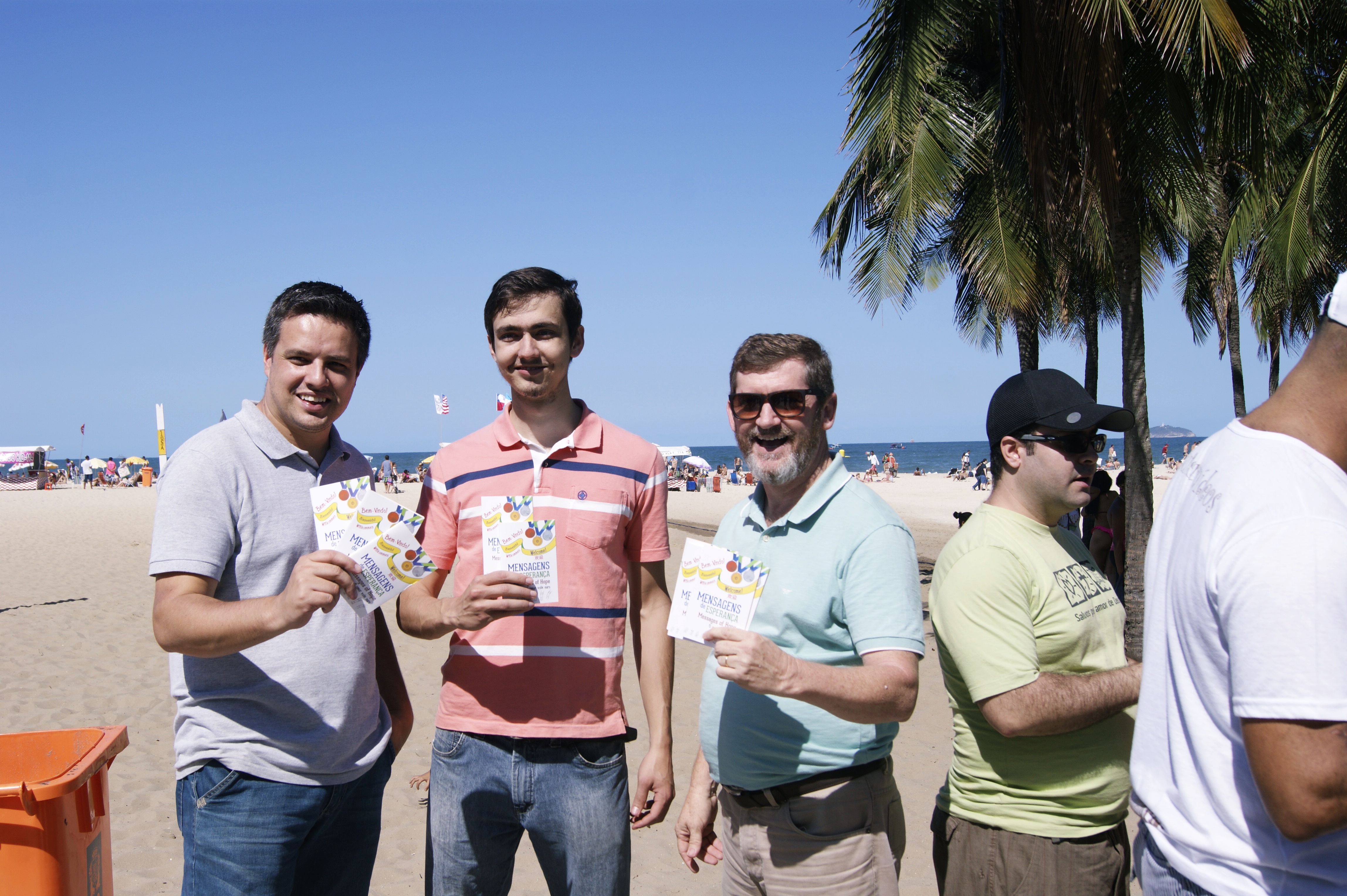 No sábado, dia 13 de agosto, a praia de Copacabana no Rio de Janeiro, RJ, recebeu jovens e pastores de algumas congregações do Distrito Rio de Janeiro. Com música, conversas e alegria, foram distribuídos cerca de 2 mil livretes da Hora Luterana, produzidos especialmente para as Olimpíadas. O livrete “Mensagens de Esperança – O Amor Vale Ouro” contém mensagens em português, inglês, espanhol, alemão e chinês. “Foi uma experiência especial. Muitos cantaram com os jovens, bateram palmas e receberam com simpatia os livretes. Outros pediram orações. Jovens chineses ajudaram a traduzir os textos da sua língua.”, conta o pastor Jonas Flor que participou da distribuição.