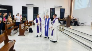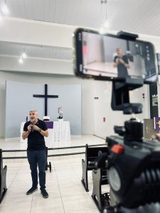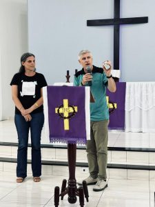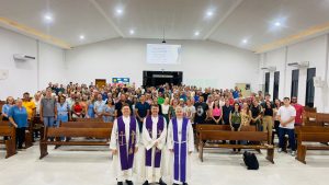 À noite, a CEL Emanuel, em Sinop, recebeu um Culto de Ação de Graças pelos 79 anos da Hora Luterana, com o tema de 2026: “Uma conversa pode mudar uma vida”. Os pastores Mauro e Laércio conduziram a liturgia, e o pastor Adelar foi o pregador.
