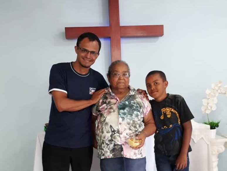 “As mensagens do Cinco Minutos Com Jesus me tocavam muito, e ainda hoje faço devoções com minha família quase todos os dias com esse devocionário. Há uns 6 anos procurei o pastor da congregação aqui, e fui muito bem recebido. Passei a frequentar e fazer a instrução de profissão de fé. E hoje cada vez mais estou envolvido com essa igreja que tem sido maravilhosa para mim e meus irmãos e irmãs que congregam conosco.” Feliz, ele contou que seu casamento com Vanessa foi então celebrado pelo pastor Clóvis Wolfgram. Outra alegria: o seu filho Tiago foi batizado na igreja luterana. Além disso, ele enviou uma foto com a dona Dina que também congrega na Igreja Luterana. Segundo o Ercílio, ela também conheceu a Igreja Luterana por meio do programa Cinco Minutos!
